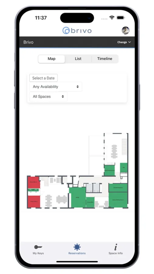 Use the Brivo Workplace App in your office or coworking space that is managed by Brivo Workplace. Unlock doors, see desk and conference room availability, connect to WiFi, plan your work day and even make or manage your own reservations from the app.