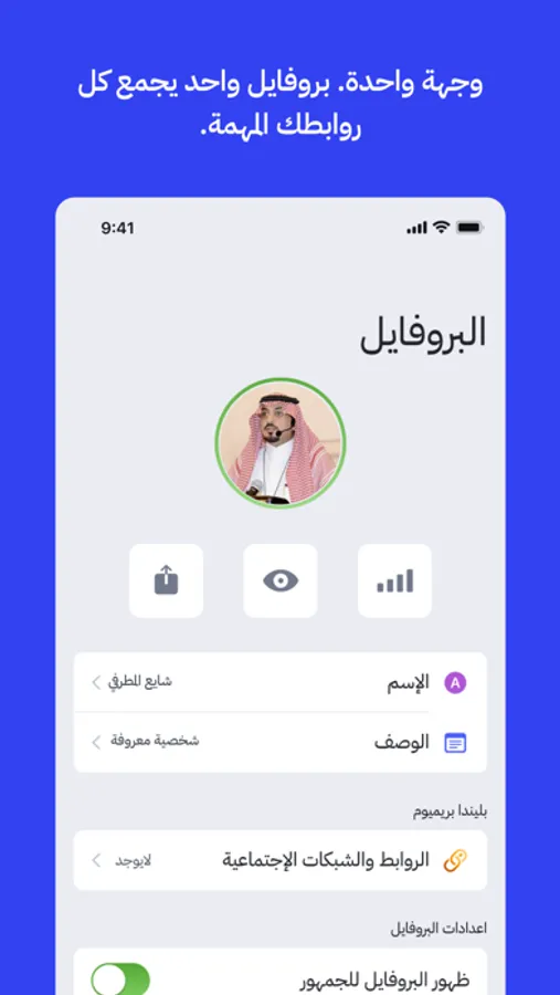وجهة واحدة لكل الروابط ووسائل الإتصال التي توفرها لجمهورك، بامكانك