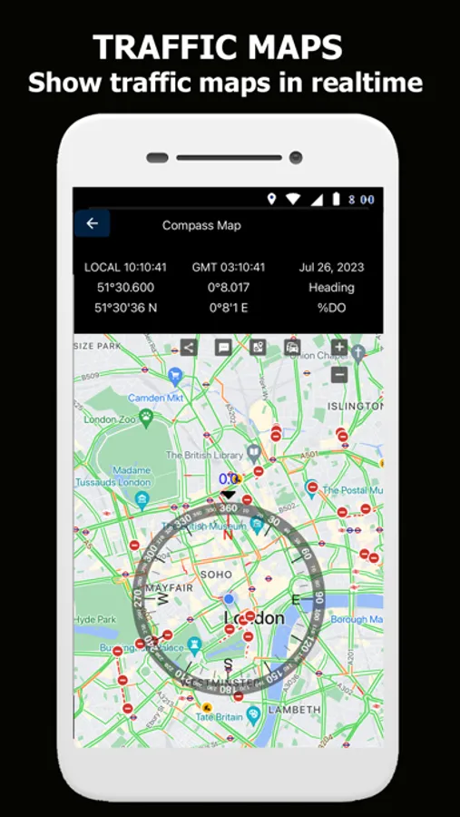 Maps compass - directional compass & digital is free the application to support show compass on the map, Traffic maps in real time, Land area measurement, show address on maps with satellite map mode and share location to networks social, email, sms or for any app you like. With GPS technology the application will auto direction compass for you.