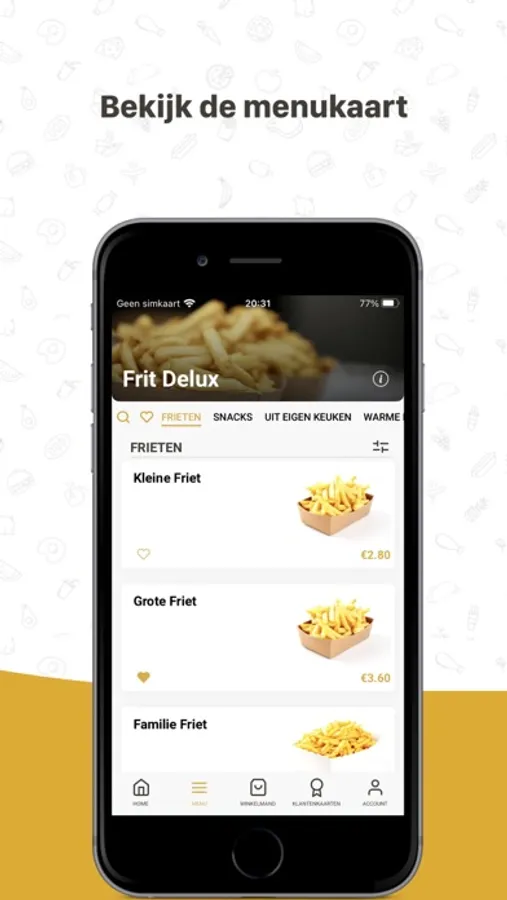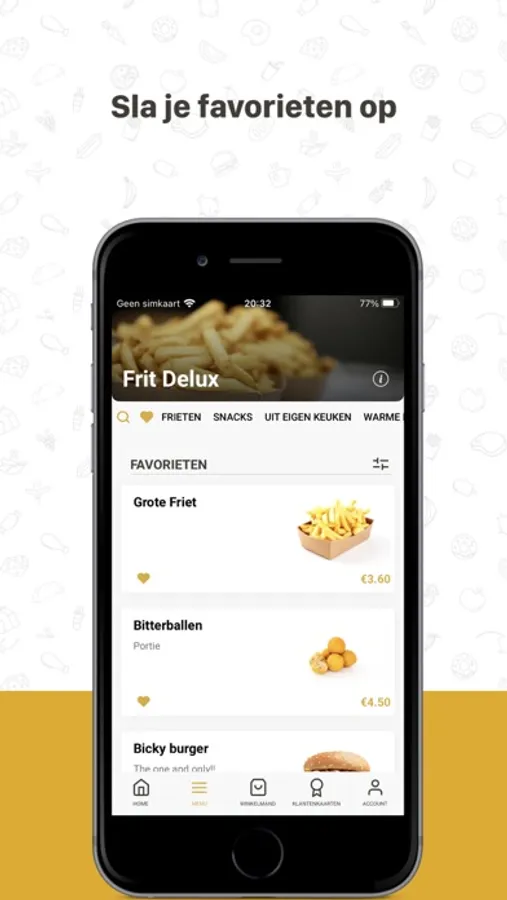 Een heerlijk pak friet, lekkere burger of smakelijk broodje zonder wachtrij? Download de Frit Delux app en bestel online.