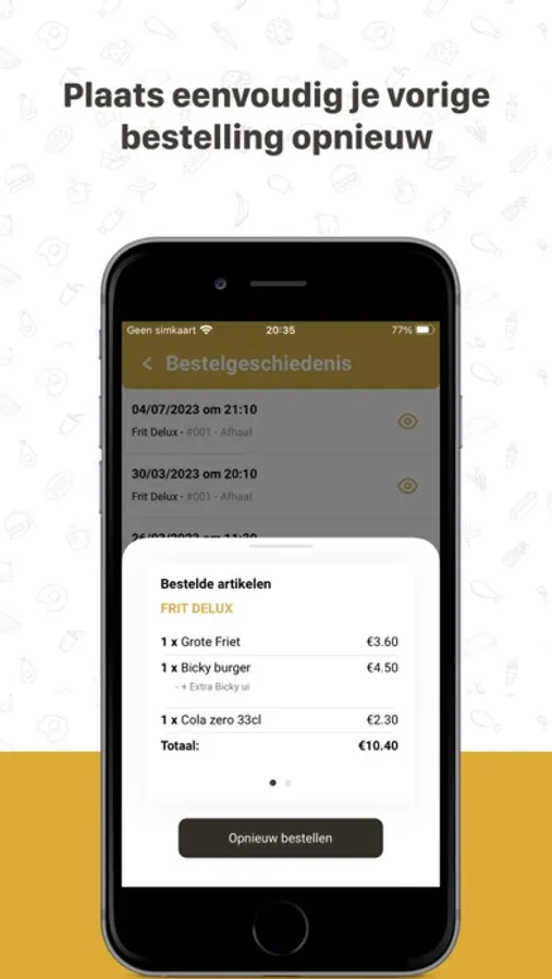 Via de favorieten functie of je bestelgeschiedenis ben je slechts enkele vingerdrukken verwijderd van een nieuwe bestelling. Echt handig!