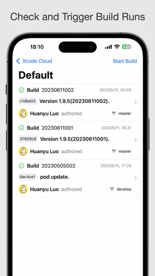 - Manage your workflow and build runs, or start a new build in Xcode Cloud.