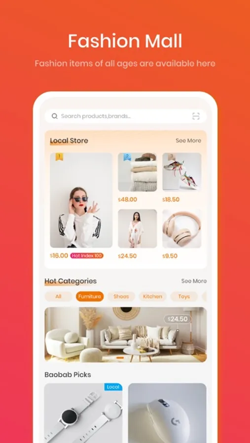 At Baobabmall, we prioritize user experience and strive to create a seamless and intuitive interface. Our app is designed to be user-friendly, allowing you to easily browse through our extensive product catalog, read detailed descriptions, and view high-resolution images. With our advanced search and filtering options, you can quickly find exactly what you're looking for.
