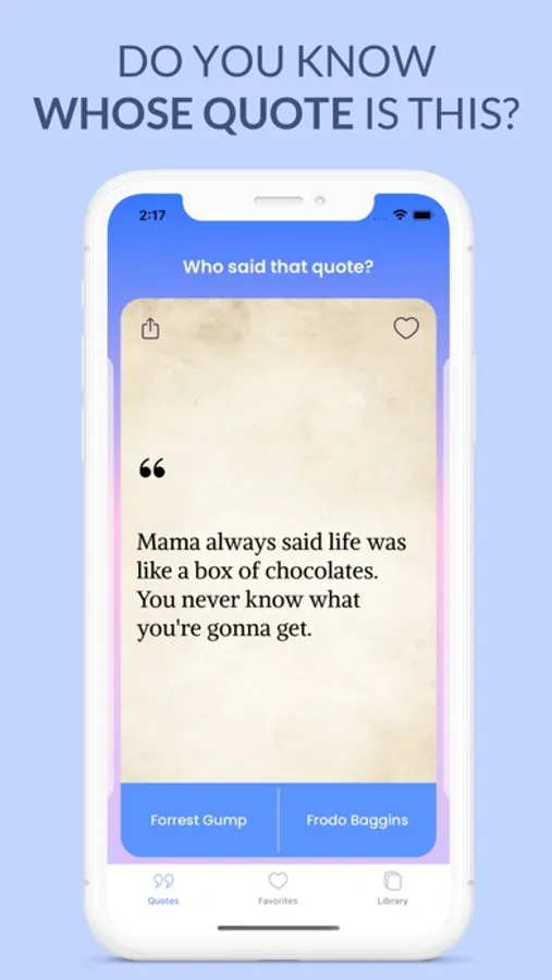 Challenge yourself to guess the authors of various quotes, ranging from motivational sayings to lines from your favorite movies. Explore our carefully curated library of quotes, handpicked to inspire and entertain you. With a user-friendly interface and a wealth of features, Guess whose quote is your go-to app for all things quotes.