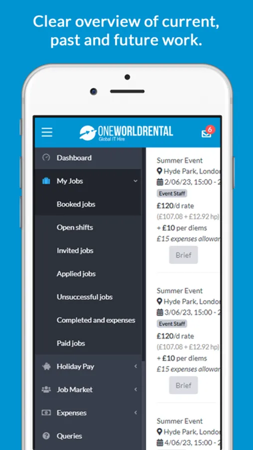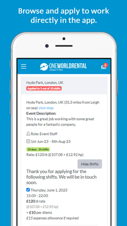 Find part-time, temp and event work in the UK and across the globe using the One World Rental app.