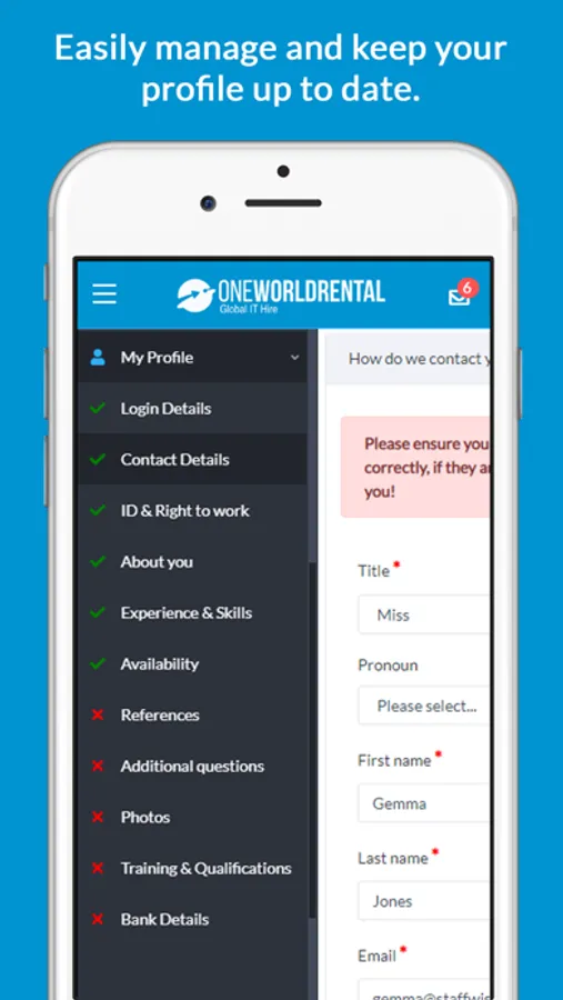 About OneWorldRental Staff App