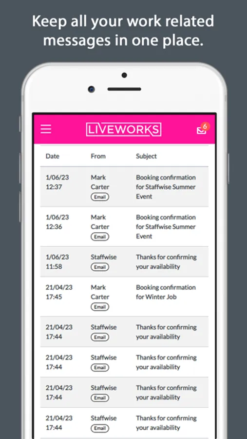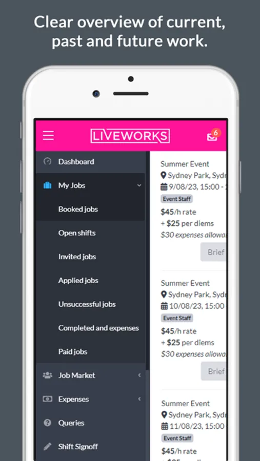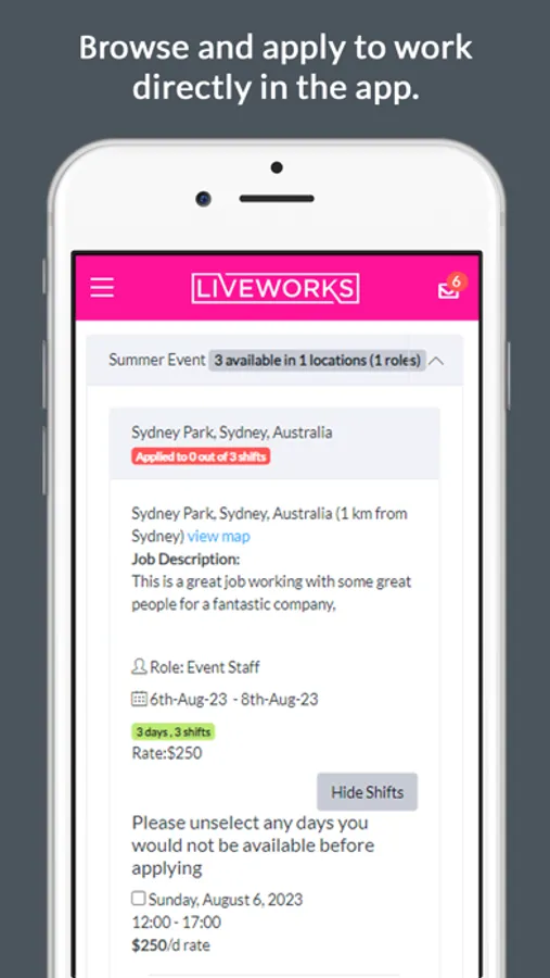 At LiveWorks, our people are our passion. We're committed to ensuring our pay rates are always competitive and fair, constantly benchmarking them to stay ahead of the game. With our app, you'll tap into a world of opportunities by browsing our exclusive 'Jobs Market' and keeping your availability up to date, guaranteeing you never miss out on that thrilling role with your favorite brand. Bid farewell to the hassle of confirming your arrival with unnecessary phone calls—our app allows you to seamlessly check-in and check-out for each shift.