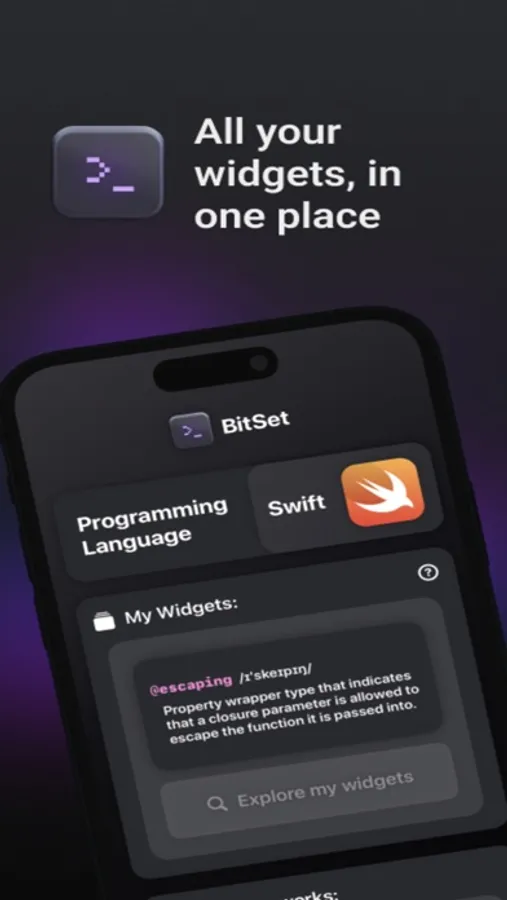 BitSet is a discrete and intuitive app that helps you learn programming concepts, through the use of widgets. Whether you're a beginner or an experienced developer, BitSet provides a comprehensive collection of bite-sized programming concepts and examples to enhance your knowledge and understanding.