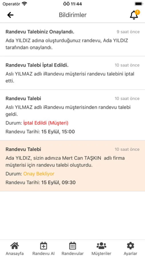 • Oluşturulan veya iptal edilen randevular için bildirim alabilirsiniz.