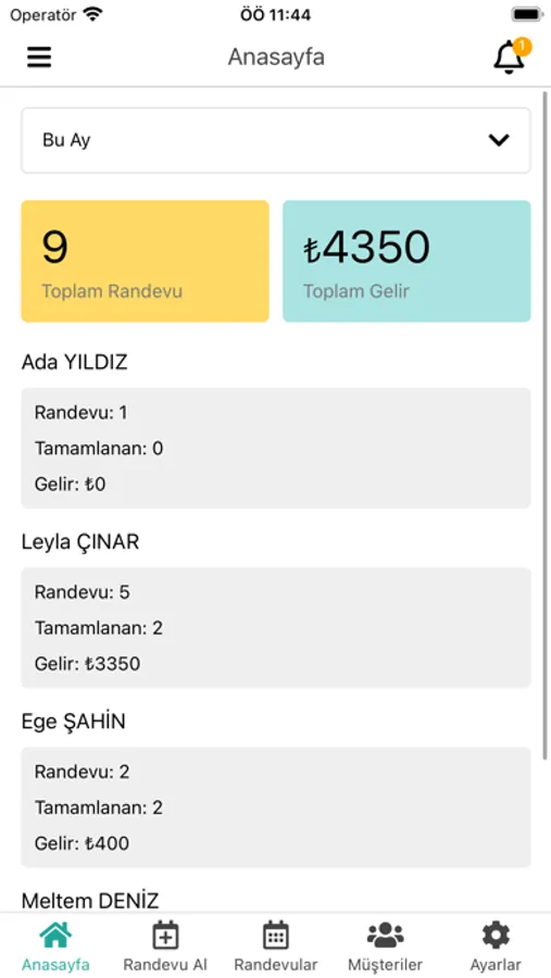 • Yetkili kullanıcılar tüm personellerin gelirlerini ve randevularını görebilir / yönetebilir.