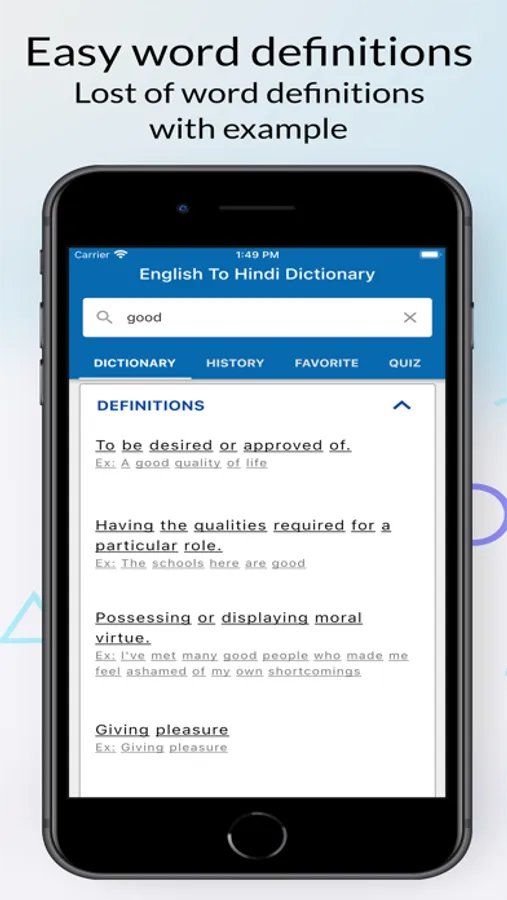 English To Hindi Dictionary app is the leading dictionary app for iOS with over 200000 trusted hindi meanings,definitions and synonyms,example.