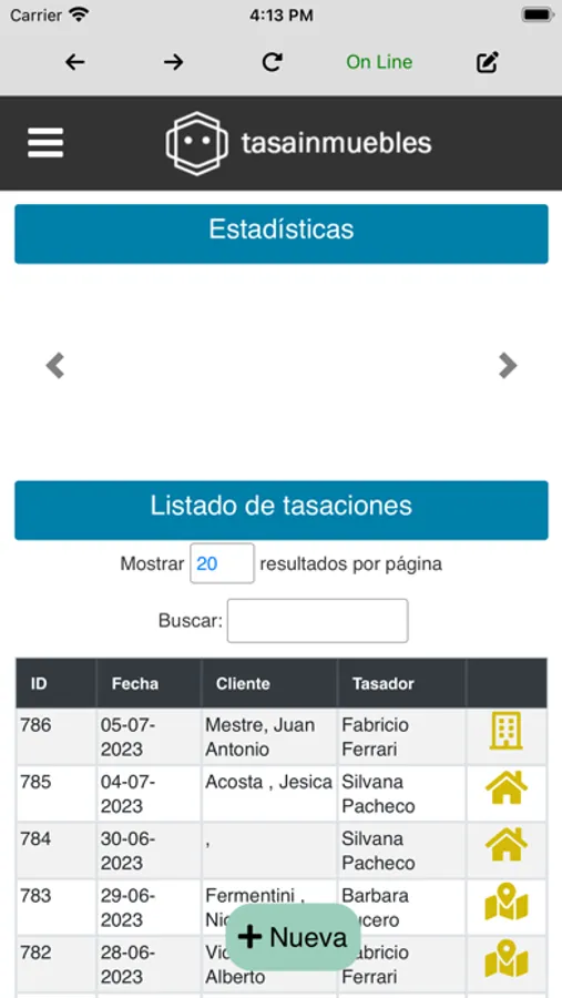 1. Realiza tasaciones fácilmente: Utiliza Tasainmuebles para evaluar tus propiedades de manera fácil y precisa. La aplicación te permite dar de alta una nueva tasación con apenas un clic y automáticamente la almacena en el sistema en estado pendiente de edición.
