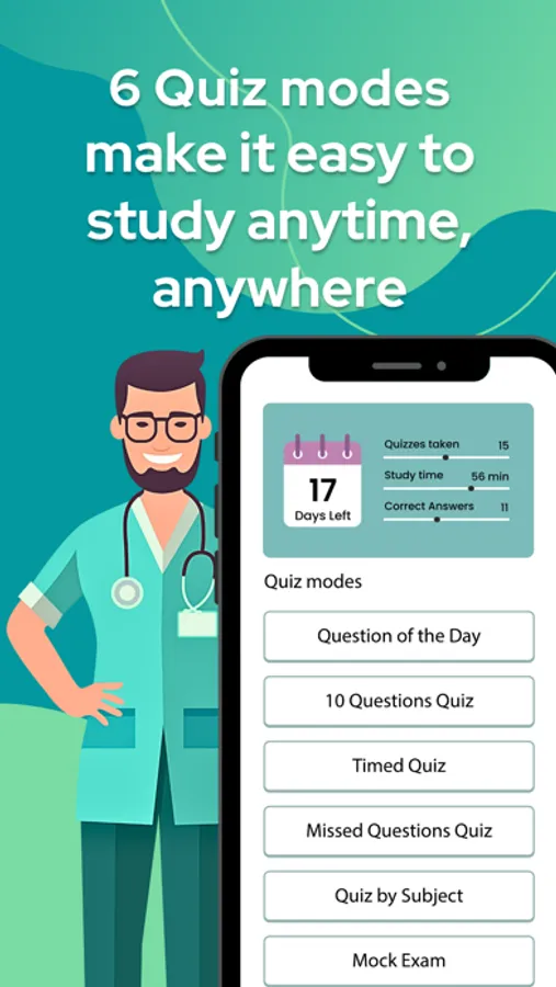 2. Multiple Quiz modes: Take quizzes based on specific topics, difficulty levels, or question types to focus your study efforts and reinforce your weak areas.