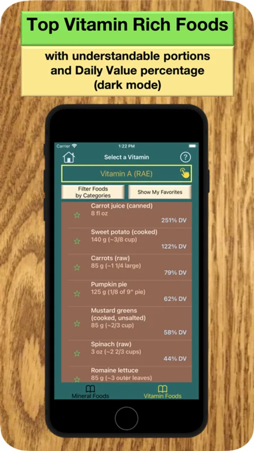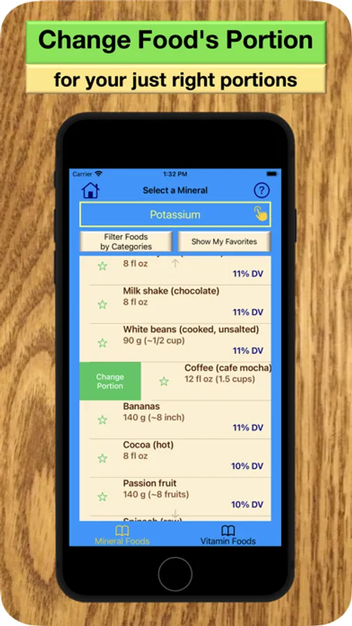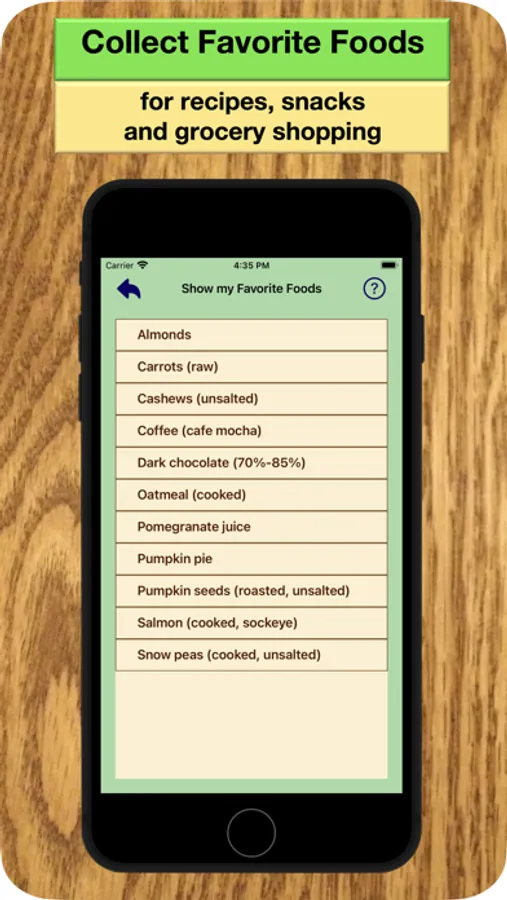 Discover your favorite USDA-measured mineral and vitamin foods that are automatically transferred to your personal list to use for shopping and feasting.