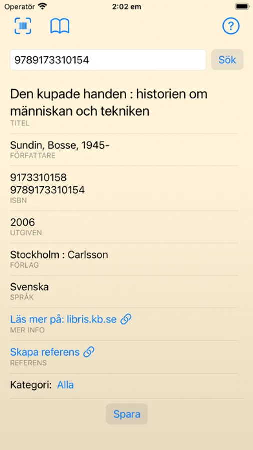 * Kan läsa streckkoder och ISBN-nummer direkt med kameran för att enkelt och snabbt lägga till böcker.
