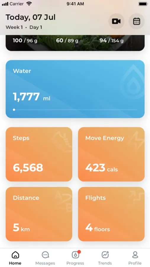 The app integrates with Apple Health to show your daily activity - distance, steps, active energy, and flights to help you better achieve your goals.