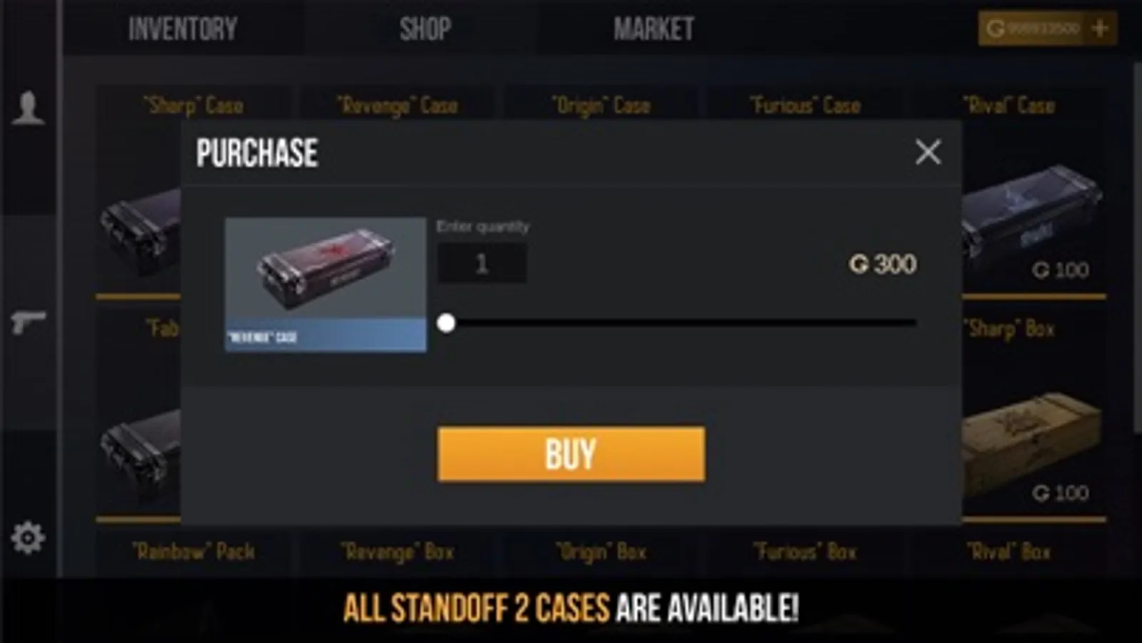 Collect every weapon from the Standoff 2 with our realistic case simulator. Complete your dream inventory with all the skins, weapons and knives! Inspect your skins in high quality, rotate 3D models. Test your luck and open as many cases as possible! All exclusive skins are available in the game! Knives, charms and stickers are also available!