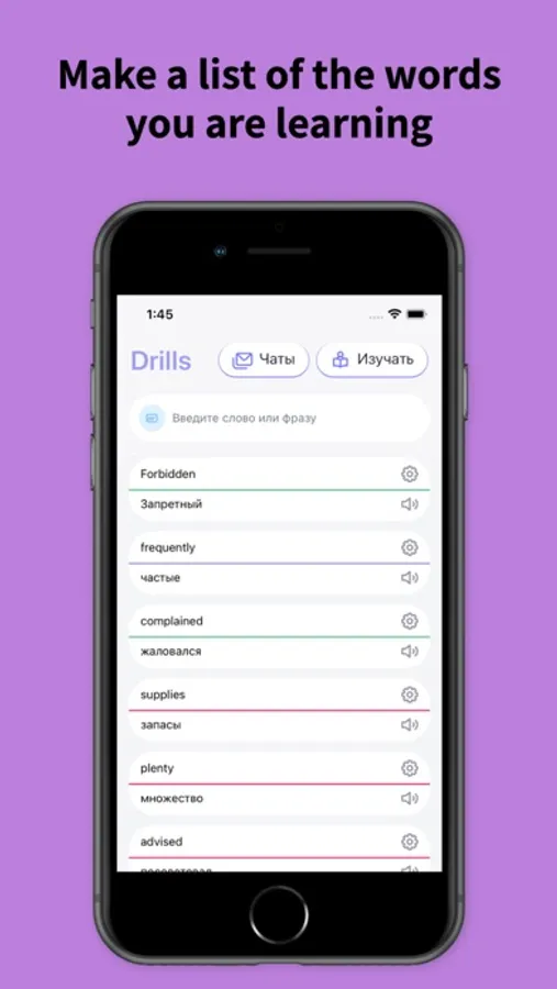 Drills inspires you to learn and improve your vocabulary. Motivational tips and achievements make the learning process interesting and inspiring.