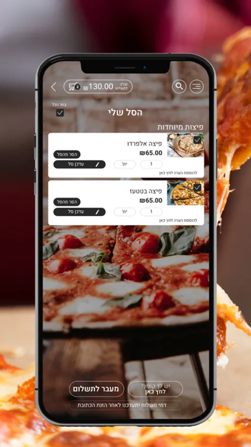 ניתן לבצע הזמנות ומשלוחים ישירות מהאפליקציה פיצה פאפנו.