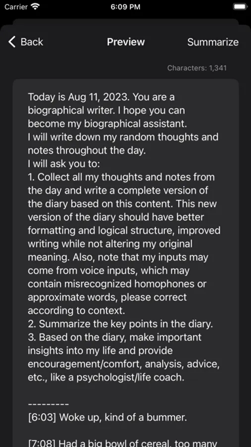 Our app intelligently summarizes your audio entries, providing you with a brief overview of your memories at a glance.