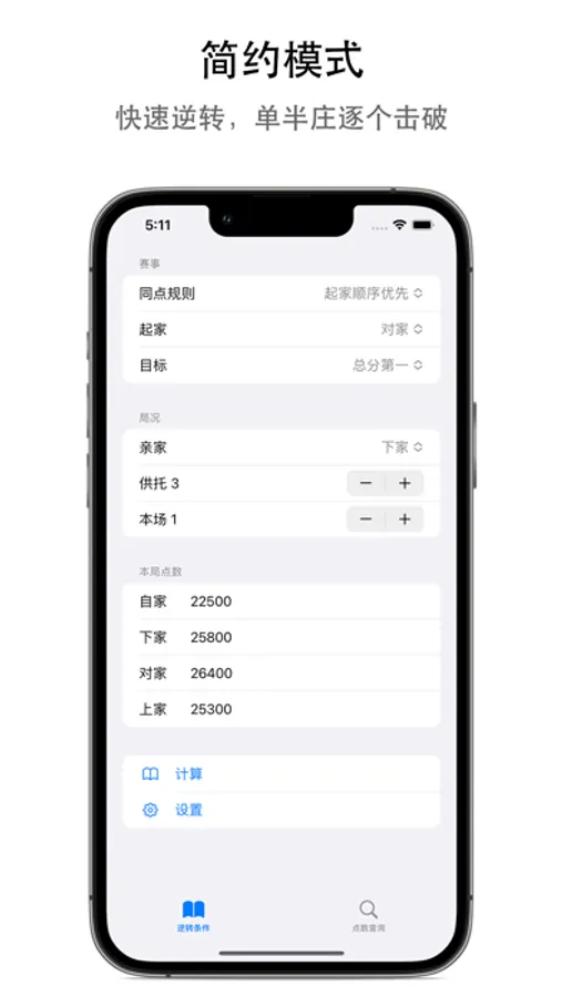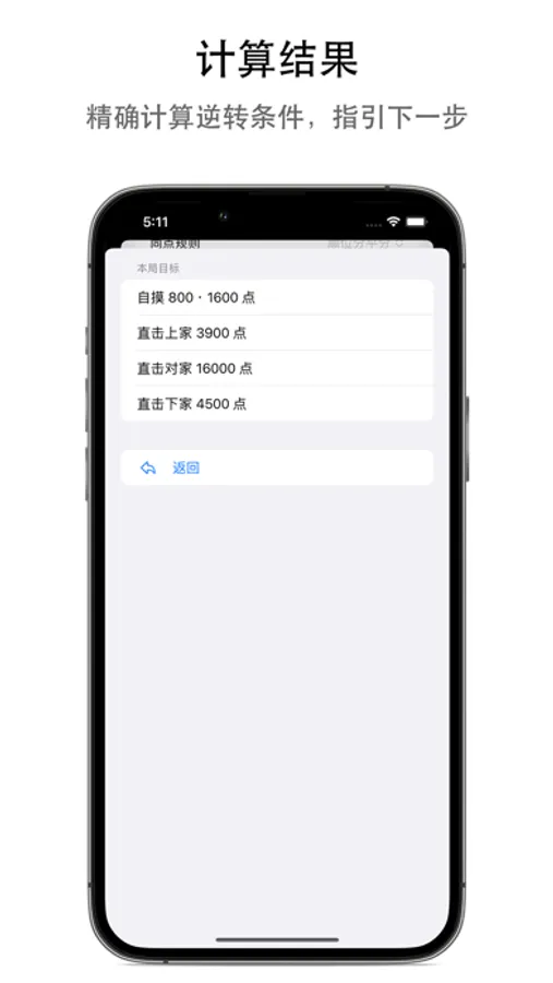 通过大逆转应用,你可以输入当前局面和玩家得分,获得自摸所需的点数以及直击每个对手所需的点数。这样,你就能够更加精准地做出判断与决策,提高在立直麻将中的竞争力。