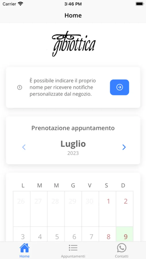 Benvenuto nell'app Gibiottica, l'applicazione ufficiale del negozio di occhiali Gibiottica di Novi Ligure. Con questa app potrai prenotare comodamente un appuntamento presso il negozio e ricevere annunci e comunicazioni in tempo reale tramite notifiche.