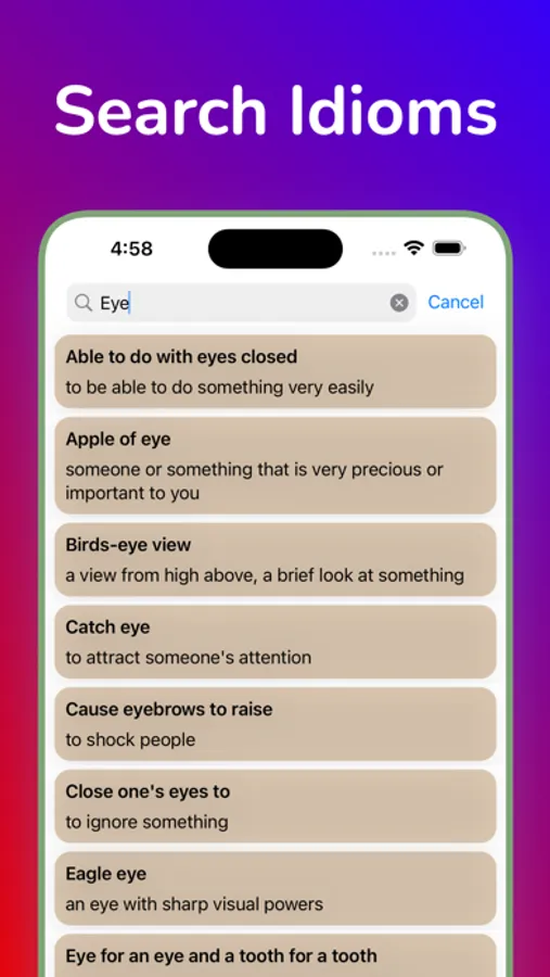 This app can be very helpful in improving your English. It has more than 1000 idioms and Phrases carefully chosen by expert.