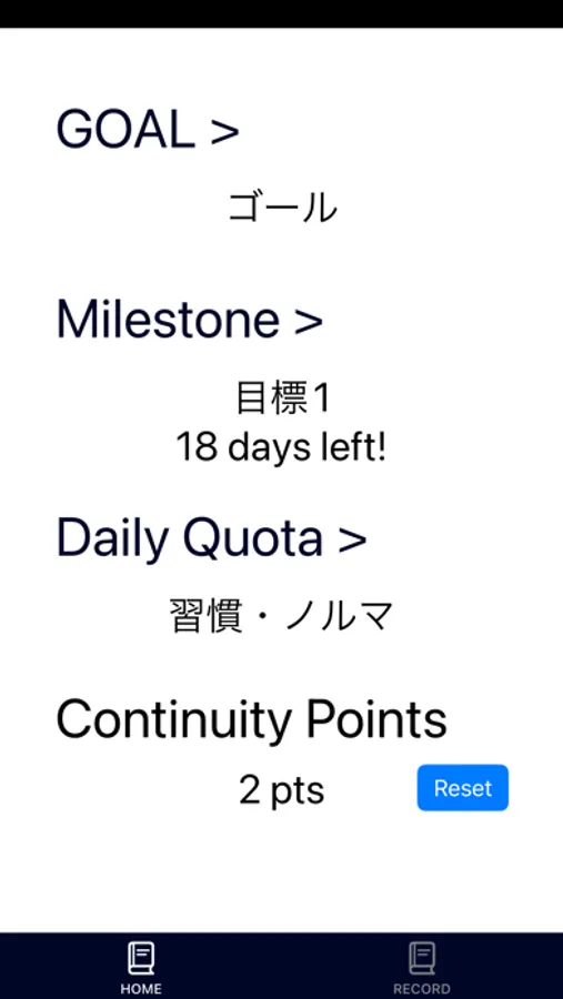 目標の設定や日々の努力を記録することができ、
