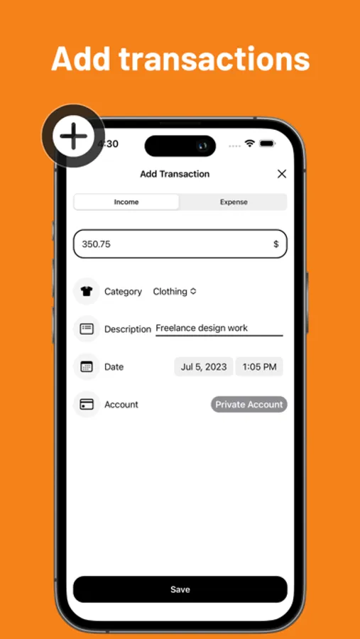 - Add income and expenses: Record all your income and expenses quickly and easily. BudSpend makes it a breeze to keep track of your finances and manage your expenses.