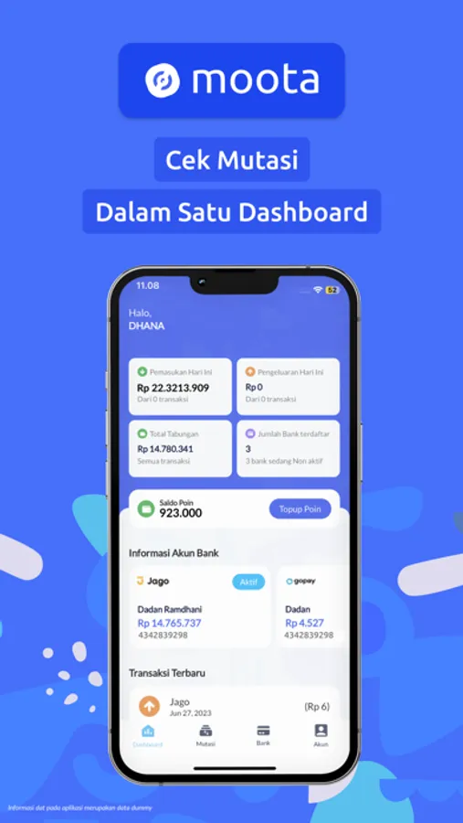 Kelola banyak akun bank kini lebih mudah dan cepat karena semua tampil dalam 1 dashboard Moota.
