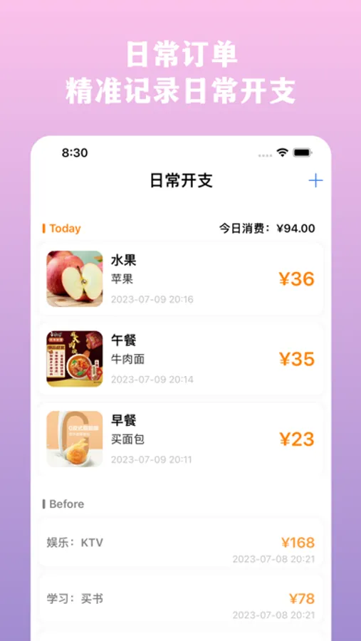 是一款精美的记录日常网络购物,日常消费,统计生活消费的App