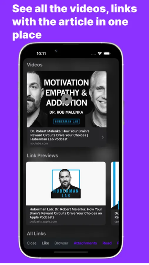 Bookmarks' innovative "Read Mode" takes it a step further by segregating links and attachments from the main article, placing them in a separate section. Now, you can easily access them when needed without disrupting your reading flow, ensuring that you stay focused on what truly matters.