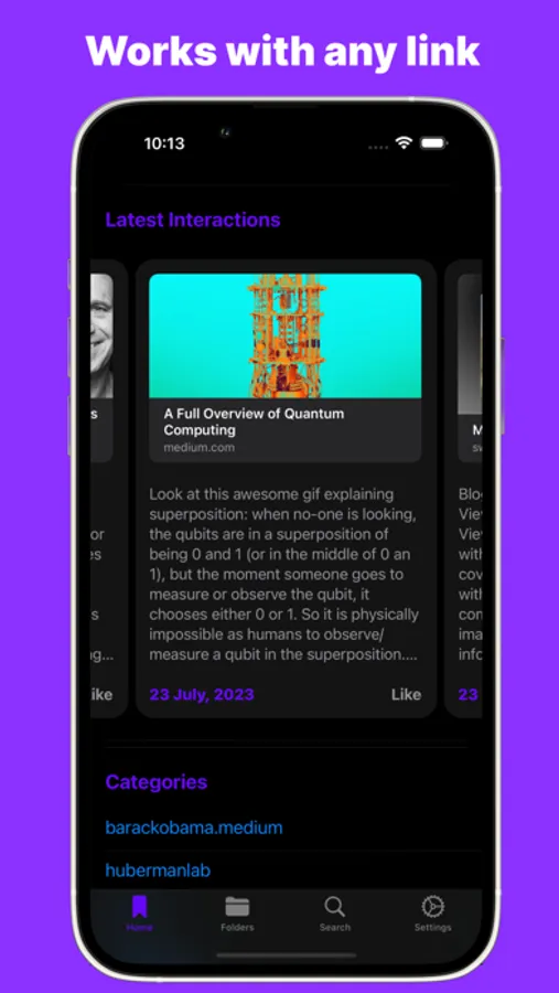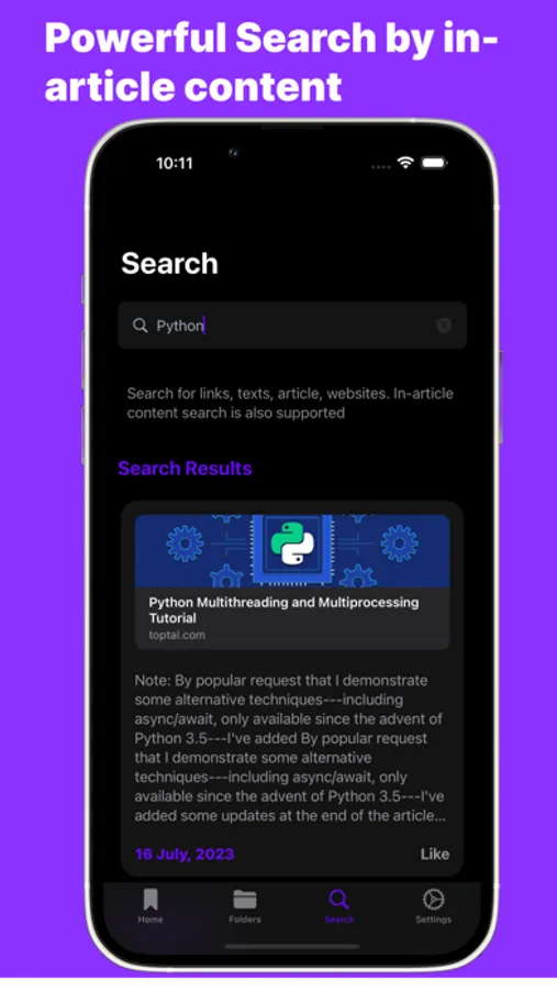 - Powerful Search Functionality: Never lose track of your content again. With our enhanced search feature, you can now search through your bookmarks with ease. Whether it's an article, text, website, or any other link, finding specific content has never been simpler.