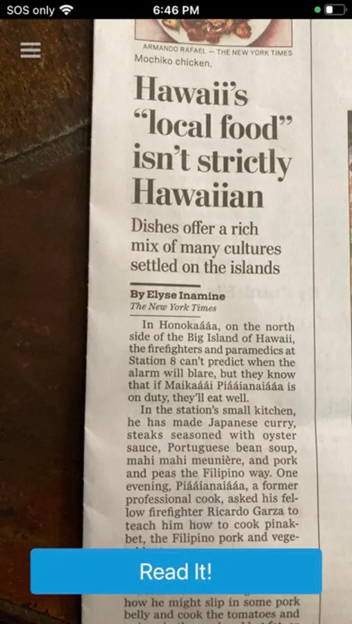 Using WhatsItSay is as simple as point, capture, and listen. No complicated menus or overwhelming features — just the straightforward "Read It!" button. Whether you're reading a letter, a menu at a restaurant, or other printed material, WhatsItSay makes it easier. Sit back, relax, and let WhatsItSay bring the words to life as it reads aloud to you.