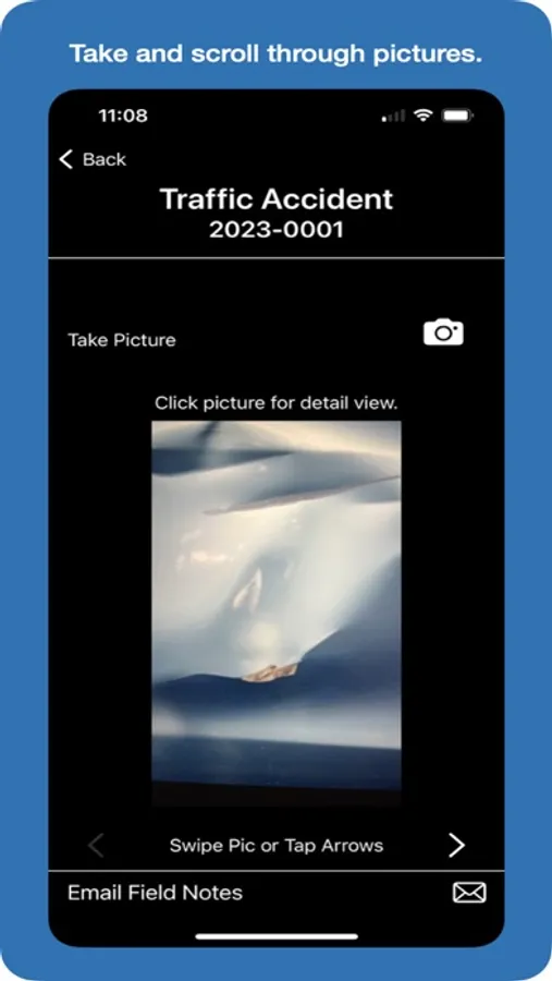 Scroll through thumbnails of your incident pictures and tap on a picture to view a fullscreen image and add associated notes.