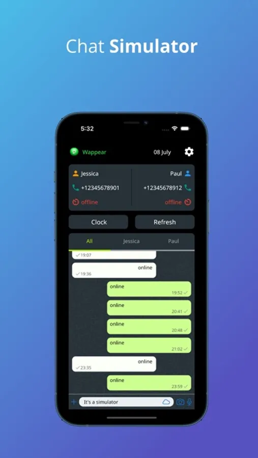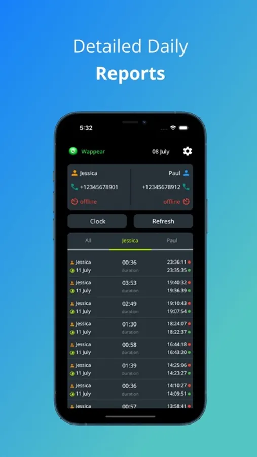 Track if your child is sleeping or online on the phone. Analyze how often he/she uses the phone during the day from the end-of-day reports. In addition, thanks to the feature we offer, you can examine whether your two children are talking to each other from the simulator.