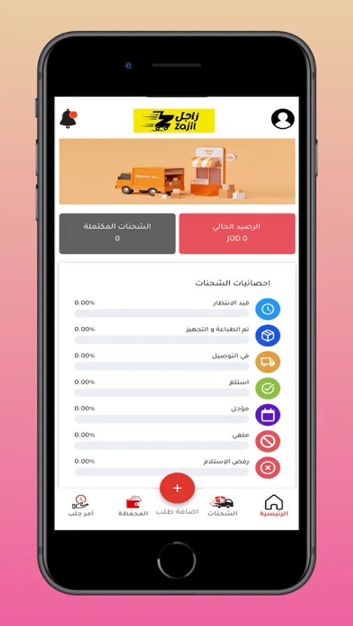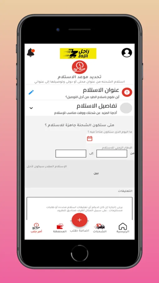 تطبيق خاص للعميل لمتابعة الشحنات و المعلومات المالية و إضافة الشحنات بكل سهولة و يسر