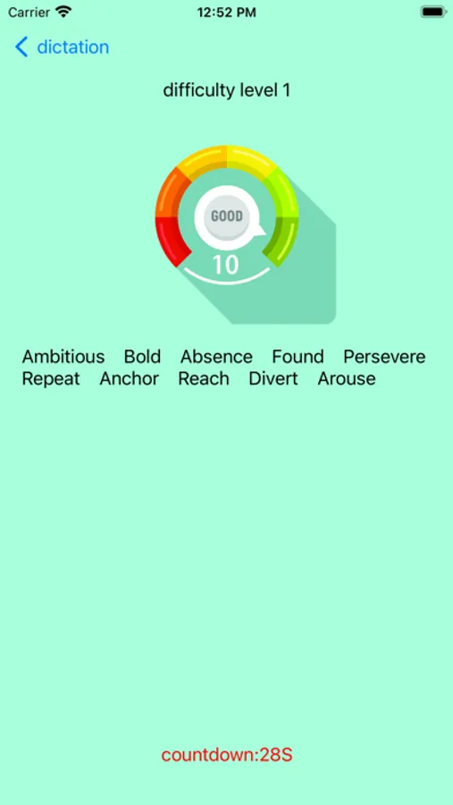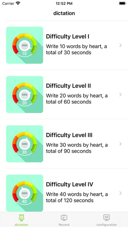 StudhardDictation is an app that helps default words, with multiple difficulties, multiple words, and multiple times for word recitation and dictation