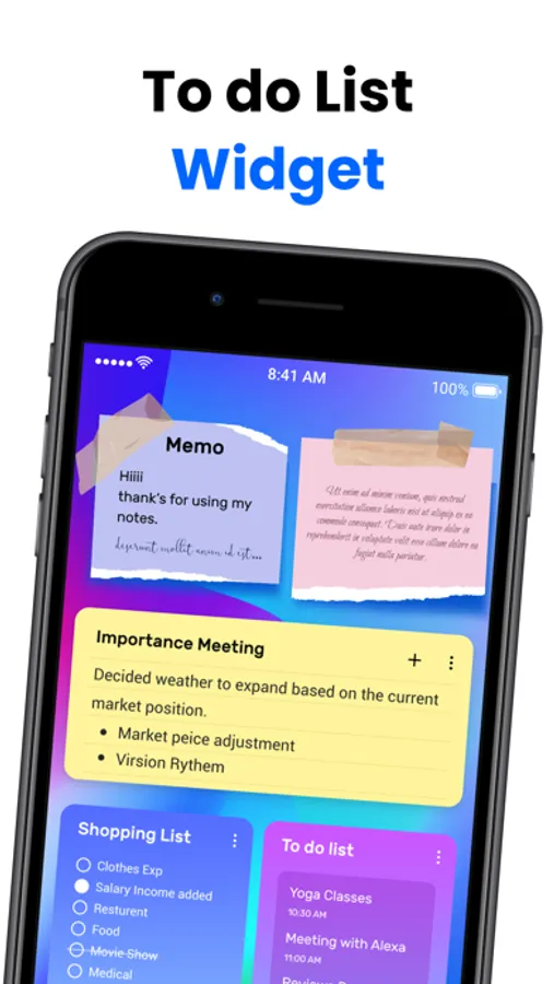 • Create lists to organize home, work, and other to-dos.