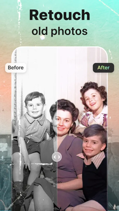Retoucher - an AI-powered photo editor with many features for your picture: image sharpening, black and white photo colorization, old photo restoration, background editing, magic eraser, and a variety of captivating photo filters.