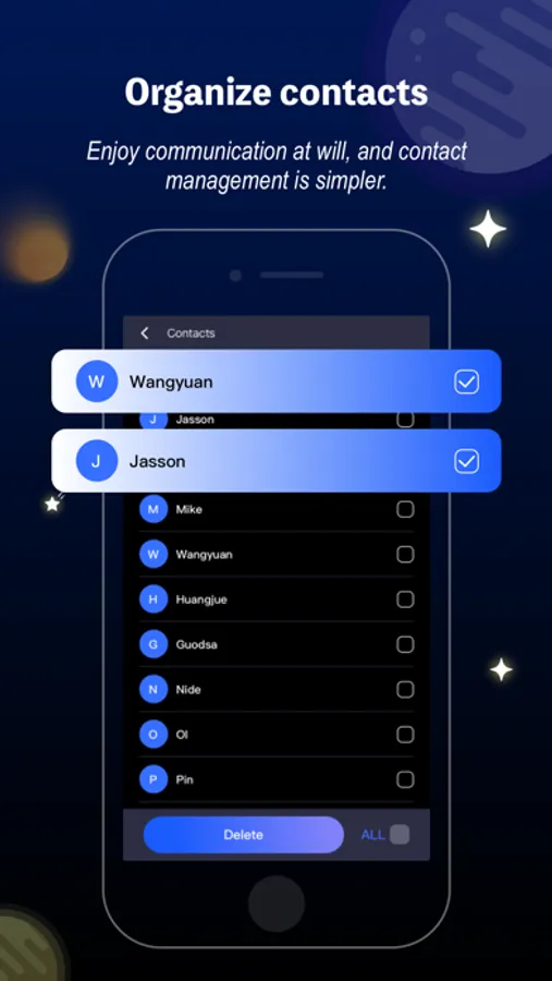 Contact Cleanup: Back up, clean, and filter duplicate contacts in a quick and easy way, and intelligently retrieve contacts with some of the same information to merge and supplement.