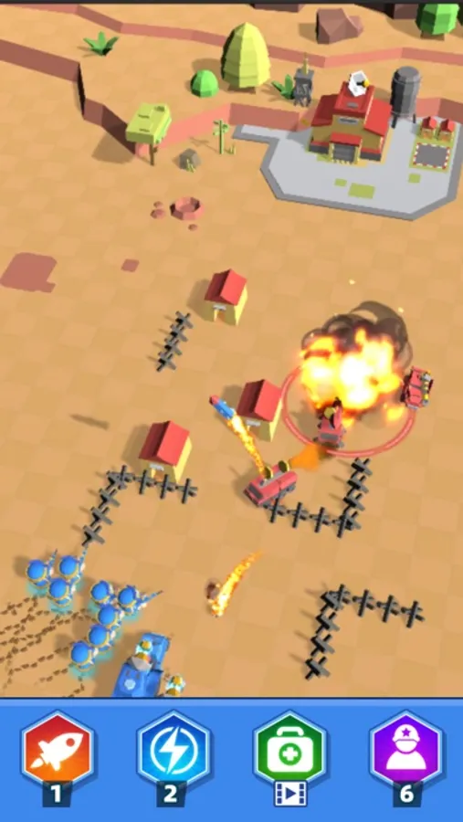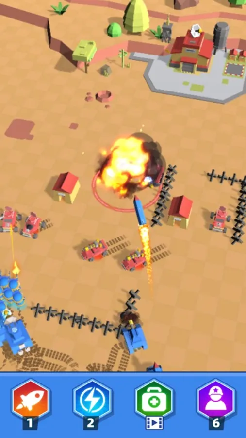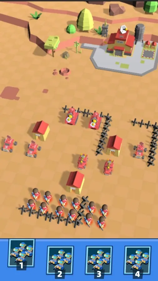 This is a strategic battle game. Players need to upgrade and form a stronger army by synthesizing small soldiers, tanks, Rocket artillery and other combat units, and finally destroy the enemy.