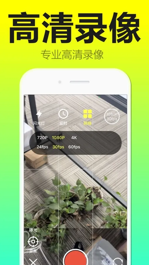 录像,高清录像,支持分辨率设置,延时拍摄,变焦,轻松录像。