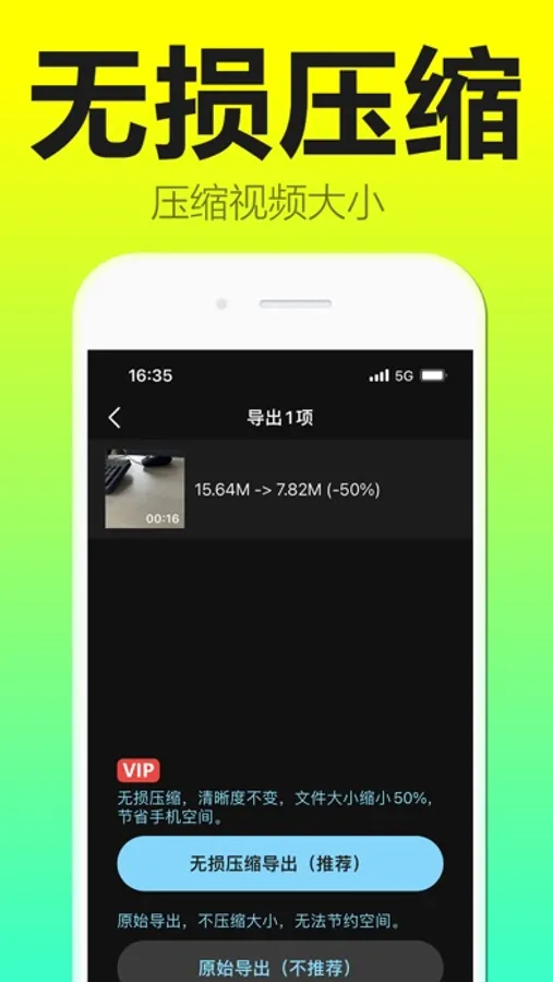 无损压缩,支持视频无损压缩,文件缩小50%,但是画质不变,为您节省手机空间。