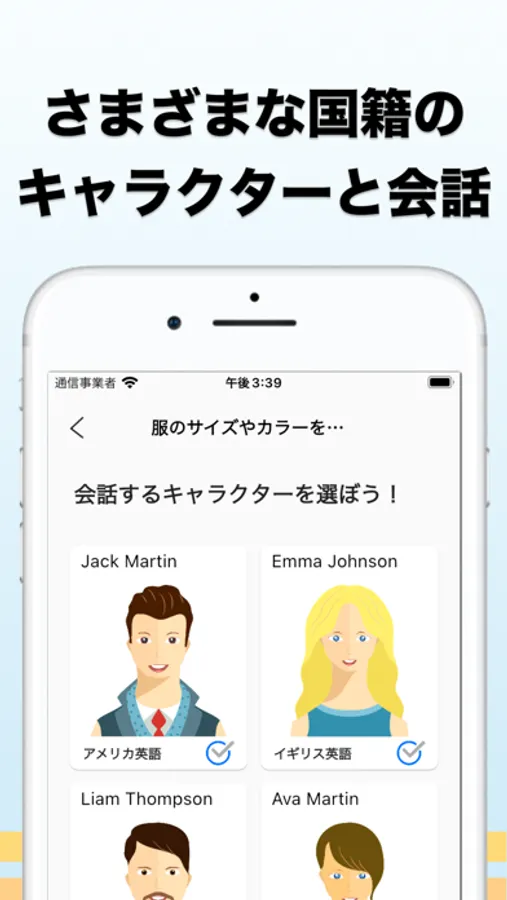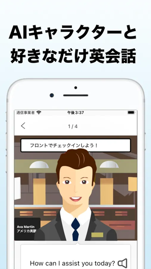 AIキャラクターと英会話練習できるアプリです。