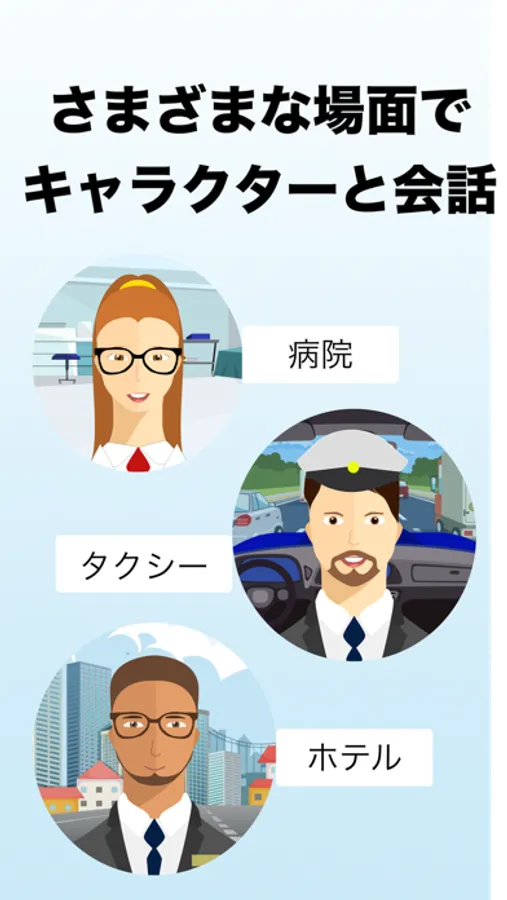 様々なシチュエーションで、様々な国のキャラクターと疑似会話体験ができます。