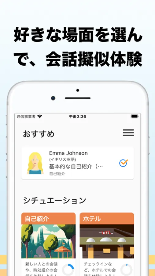 旅行・留学・仕事に役立つ英会話シーンを用意しております。