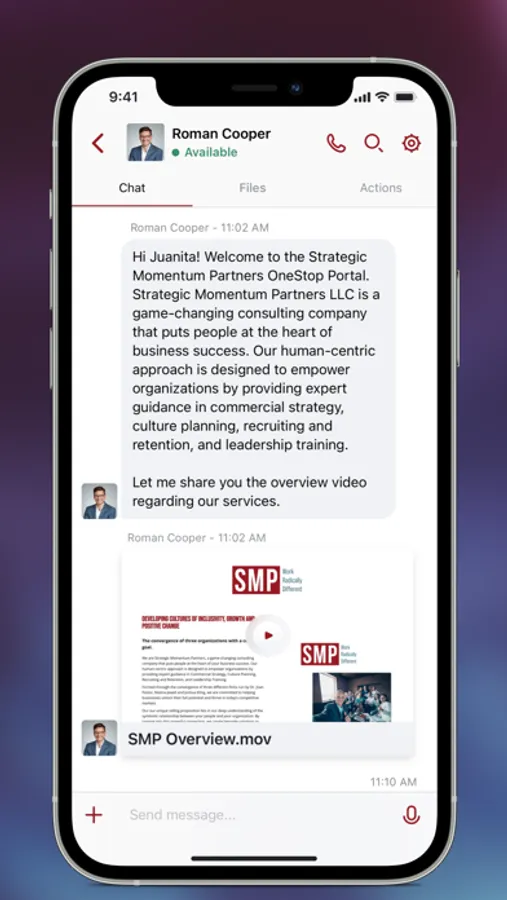 We help companies work radically different through a deep focus on employees and innovative business consulting solutions. The SMP App provides a seamless and convenient way to communicate with our team, connect with project stakeholders, and stay up-to-date on the most current information, documents, and more. Use the app to send secure messages, collaborate within private workspaces, e-sign files, receive notifications throughout the consulting process, and access your business strategy all in one centralized location.