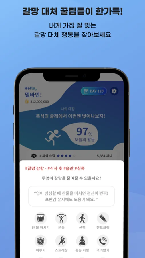 - 상황과 갈망 강도 기록이 쌓이면, 어떤 상황에 어떤 행동이 가장 도움이 되는지 알 수 있어요.