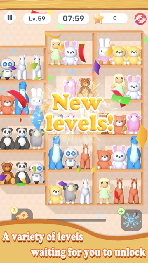 Relax anytime, anywhere: We understand that your time is valuable, and that's why we've implemented the pause feature in Goods Tidy 3D Triple Puzzle. Whenever you need to attend to other tasks or simply take a break, feel free to pause the game and resume whenever you're ready. This flexibility ensures that you can fit the game seamlessly into your busy schedule.